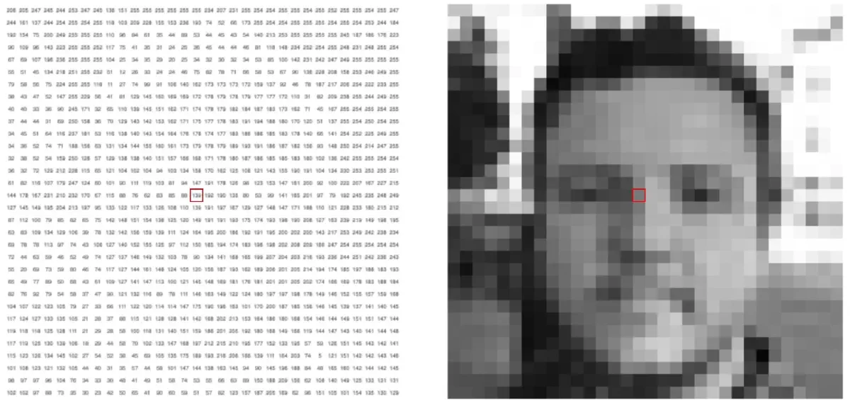 图像在计算机中由大量看似连续的像素构成,在数学上图像的每个像素可以对应为线性代数里矩阵的每个元素,因此使用矩阵表示图像。图像的种类不同,矩阵的维数会有变化:灰度格式的图像可用一个元素值介于0~255之间的二维矩阵来表示,元素值的大小对应着像素点的亮度(0对应黑色,255对应白色);彩色图像(RGB图像)可用三维矩阵表示,红(R)、绿(G)、蓝(B)三个分量分别用一个矩阵表示,3个矩阵组合起来构成三维矩阵。可以说,图像就等于矩阵,所以线性代数中有关矩阵理论的成果可以应用于图像处理上。